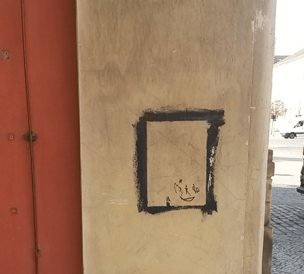 In response, activists in various cities across the GDR including Berlin, Dessau, Dresden, Guben, Halle, Potsdam, and Rostock established their own groups. Antifa Potsdam, the first independently organized Antifa group, was formed shortly after the attack on the Zion Church. Their first known action took place on the night of 5 to 6 November 1987. They posted flyers and graffiti with the message “Warning: Neo-Nazis in the GDR too” on the walls all over Potsdam. Today, more than 30 years later, a black frame on the back of the Potsdam Film Museum serves as a reminder of the early days of an independent Antifa movement that emerged in the GDR.